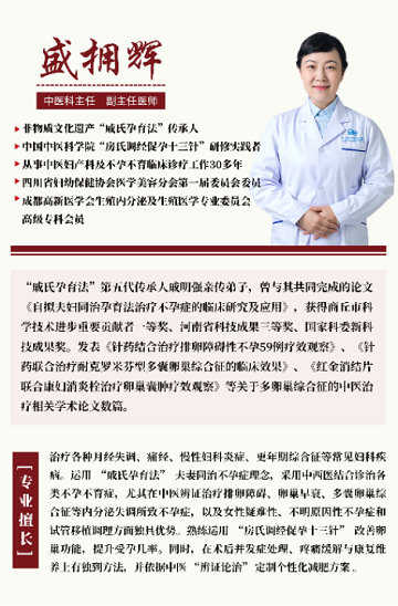 最后看看盛拥辉主任所在的四川省生殖专科医院怎么样呢?四川省生殖专科医院,实施“五大明确”看不孕不育,让患者看病明明白白,治疗有信心、疗效可靠:明确不孕不育病因,查的准才能治得快; 明确能否治疗,不让患者花冤枉钱; 明确治疗方案,预判治疗效果;明确治疗疗程,心里有底治得安心;优生优育,科学看待不孕不育治疗。