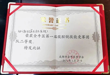 在金牛区第一届腹腔镜技能比赛中,我院妇科手术团队取得了团队二等奖的名次。