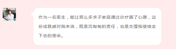 作为一名医生,能让那么多求子家庭通过诊疗圆了心愿,这份成就感对我来说,既是沉甸甸的责任,也是支撑我继续走下去的使命。