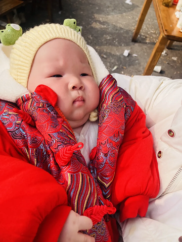 榆榆宝贝从满月到百日,我们见证你的成长。换新衣、戴新帽迎来了人生百日宴!