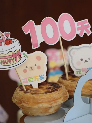 百日宴上的餐前甜品精巧可爱,全是父母亲人对雨点的殷切和关爱!